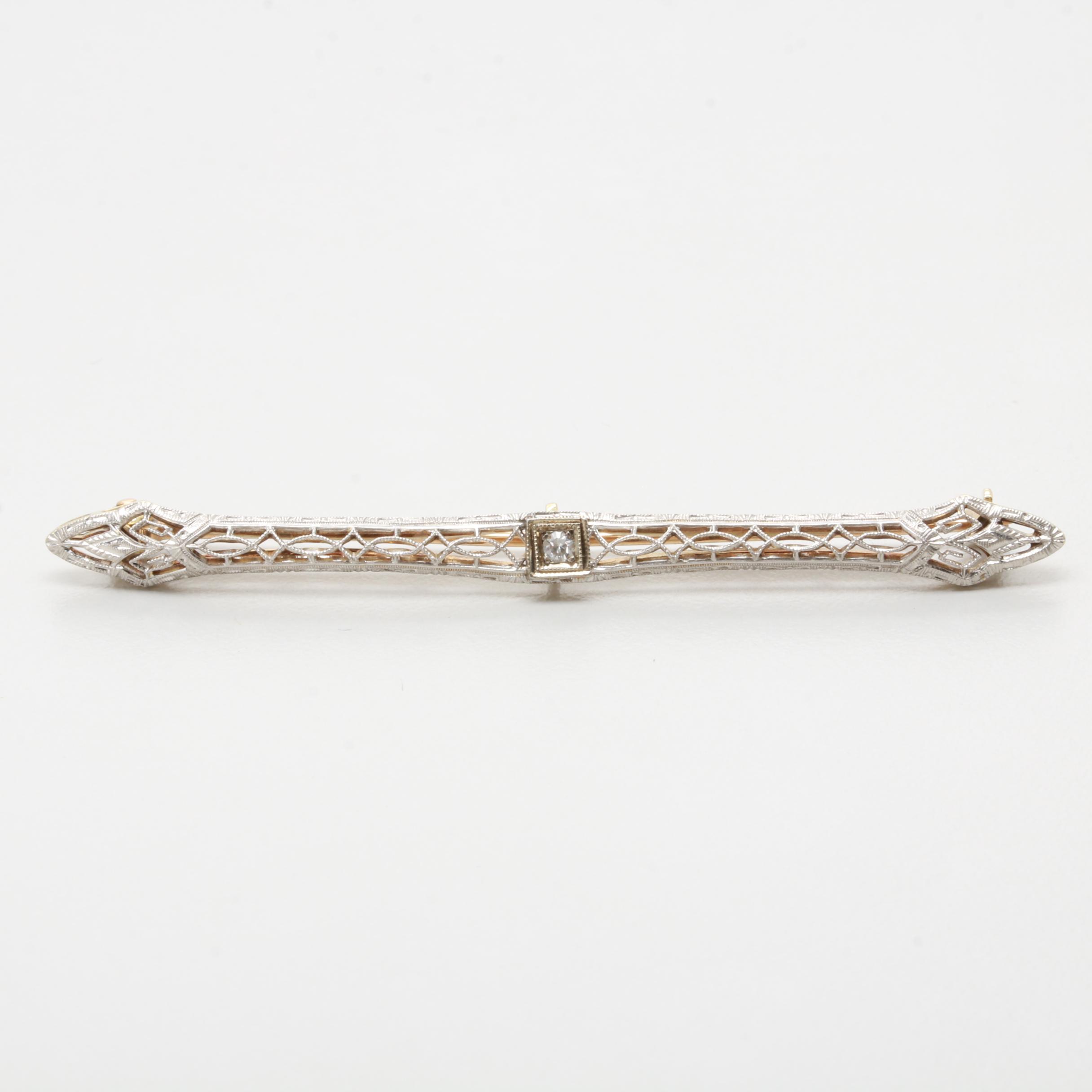 Vintage Krementz 14k White And Yellow Gold Diamond Brooch
