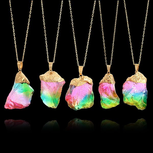 Wholesale 2018 Natural Rainbow Quartz Stone Irregular Rock Pendant Crystal Necklace Wire Wrap Jewelry For Women Girls Support Fba Drop Shipping H212f