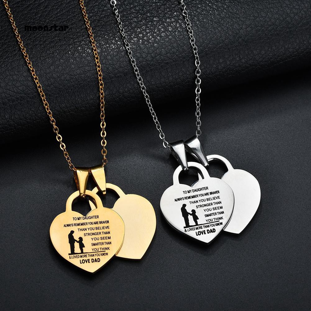 Moonstar Creative Double Love Heart Lock Pendant Jewelry Father Daughter Letter Necklace