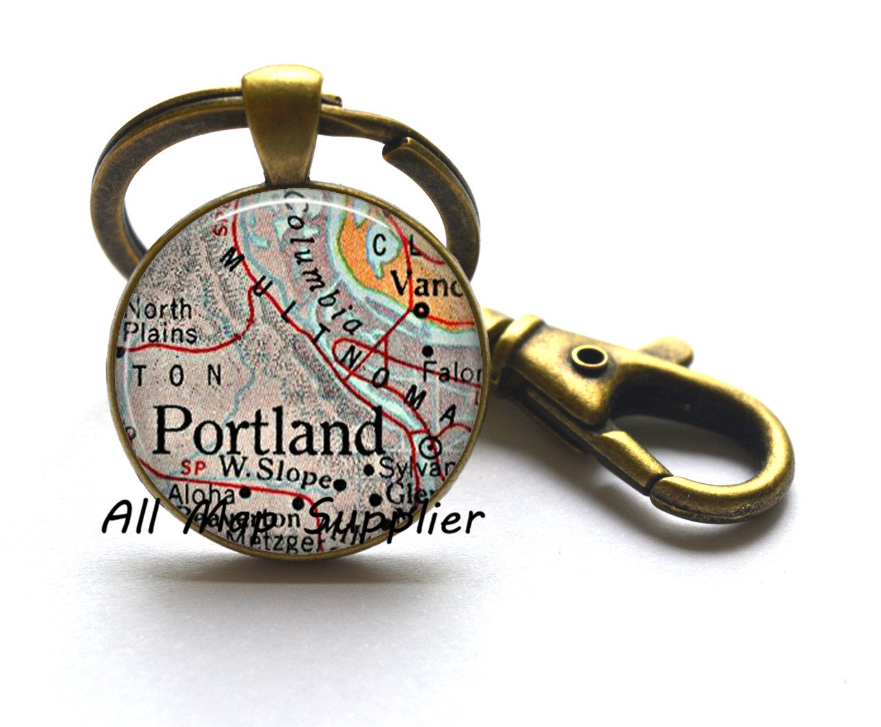 Amazon Com Charming Keychain Portland Oregon Map Key Ring
