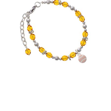 Silvertone Mini Pink Softball Or Baseball Yellow Beaded Bracelet