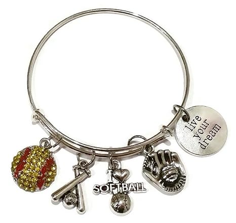 Softball Bracelet Softball Jewelry Softball Bangle Softball Gifts Softball Player Gifts For Softball Girls Softball Gift