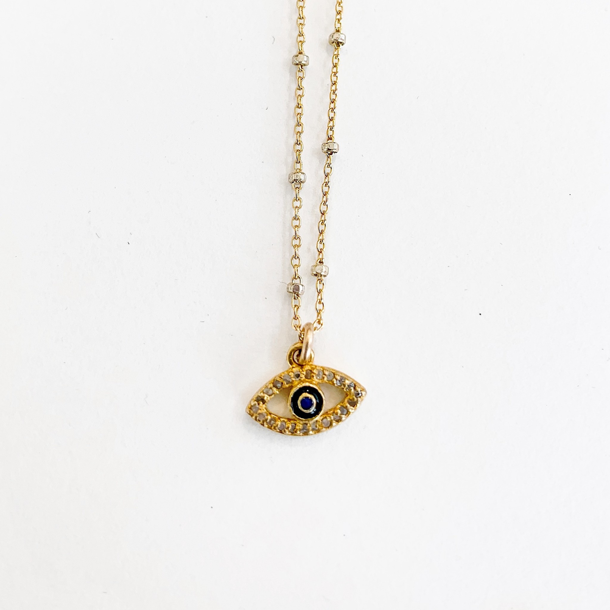 Necklaces are very popular in the assortment when it comes to the evil eye design. At the eye of jewelry we take pride in showcasing pieces of talented designers. Carrying their pieces and even sometimes developing a genuine relationship and friendship with them.