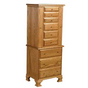 Amish Oak 7 Drawer Jewelry Chest Armoire Two Wings All Lined