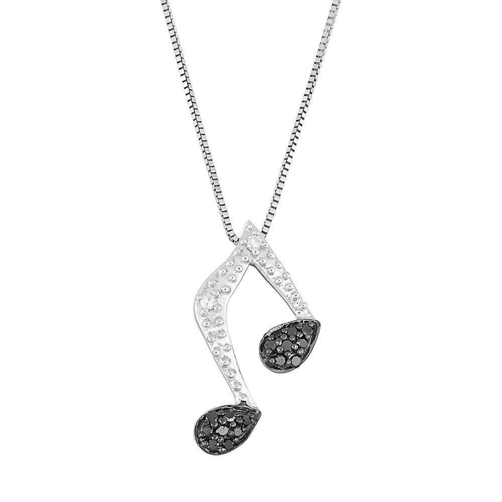 Sterling Silver 1 10 Carat T W Black White Diamond Music Note Pendant