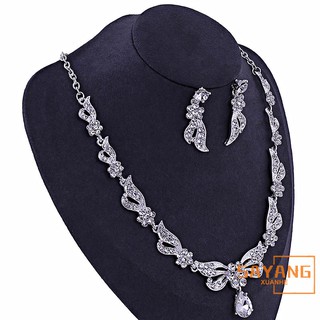 Crystal Wedding Jewelry Sets Women Silver Leaf Rhinestone Necklace Sets Bridal Jewelry