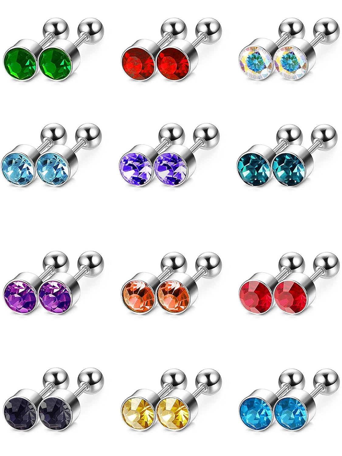 Mudder 12 Pairs 18 Gauge Stud Earrings Stainless Steel Barbell Studs Helix Earring Body Piercing Jewelry 12 Colors