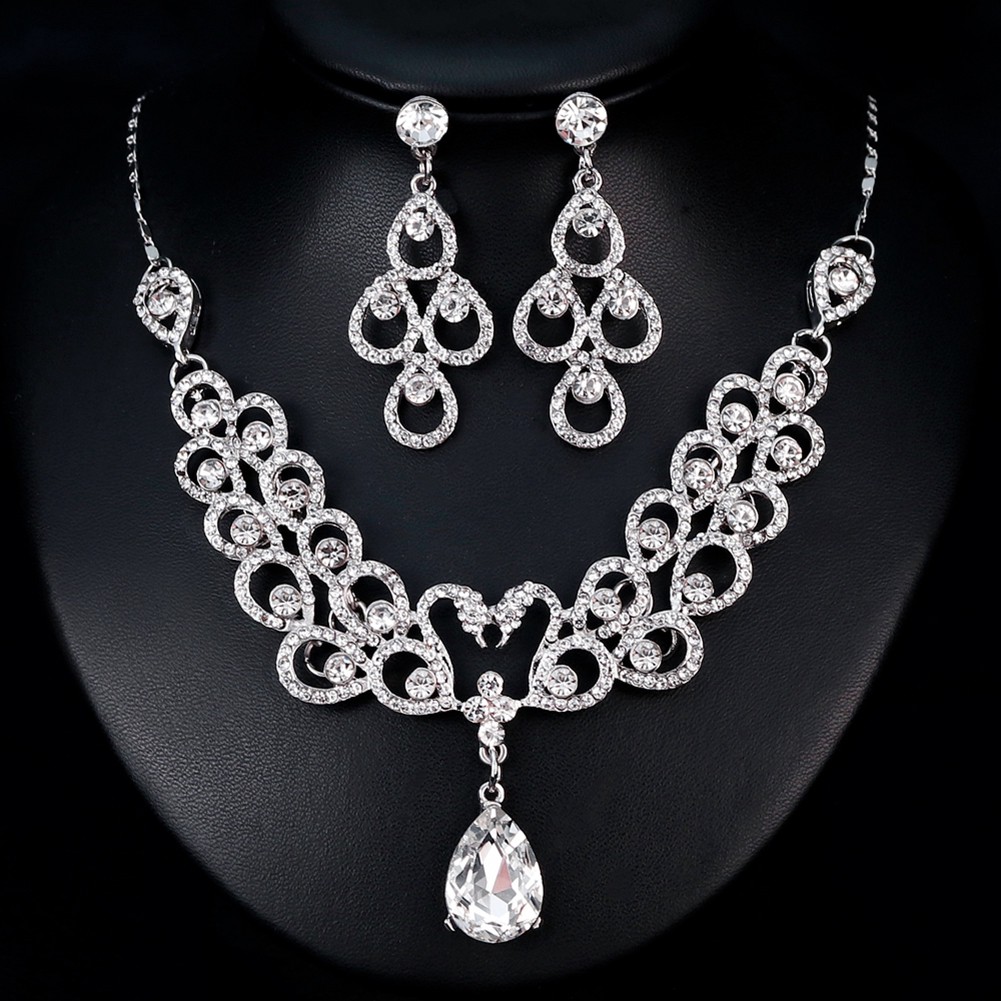 Lk Fashion Elegant Alloy Rhinestone Necklace Drop Earrings Women Bride Jewelry Set