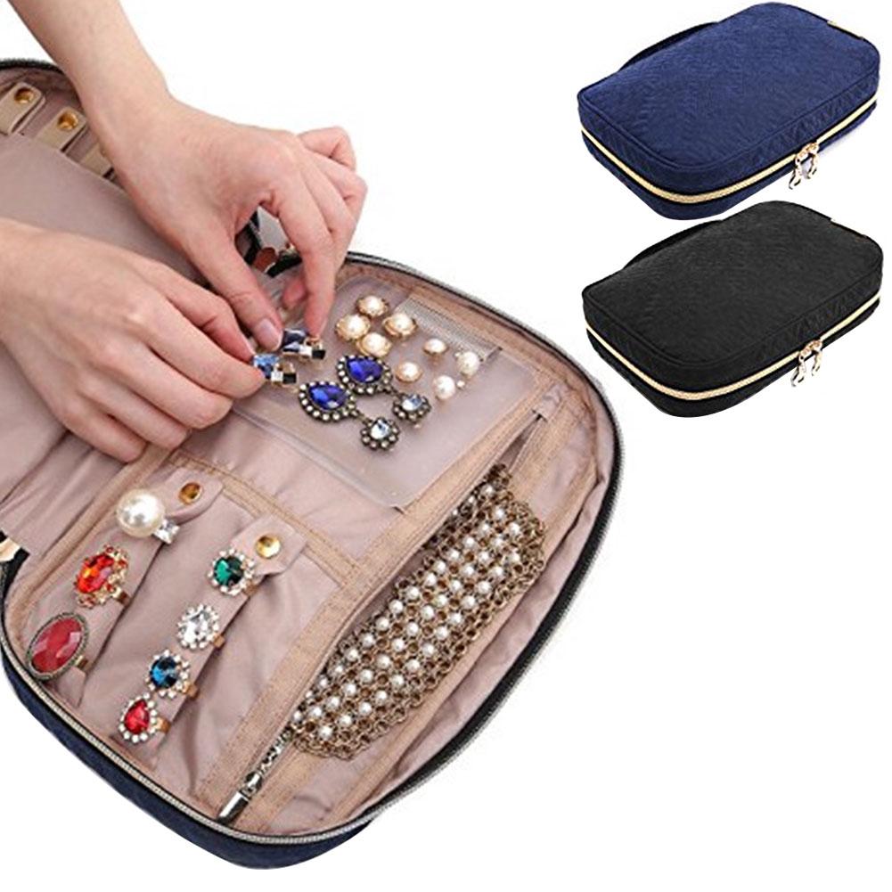 Travel jewelry organizer casestorage bag holder for earringsnecklaceringswatch girl portable jewelry case black flower. Built into the lid the mirror is almost as wide as the jewelry box which measures 685 x 485 x 165 inches and is perfect for applying makeup on the go.