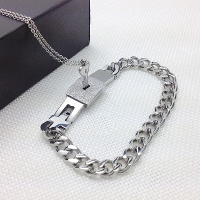A Couple Jewelry Sets Stainless Steel Love Lock Bracelets