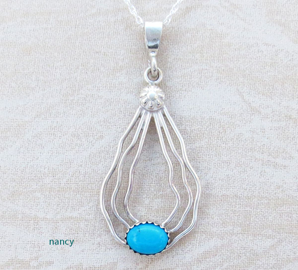 Sterling Silver Wire Turquoise Pendant W Chain Navajo Jewelry 1670sn