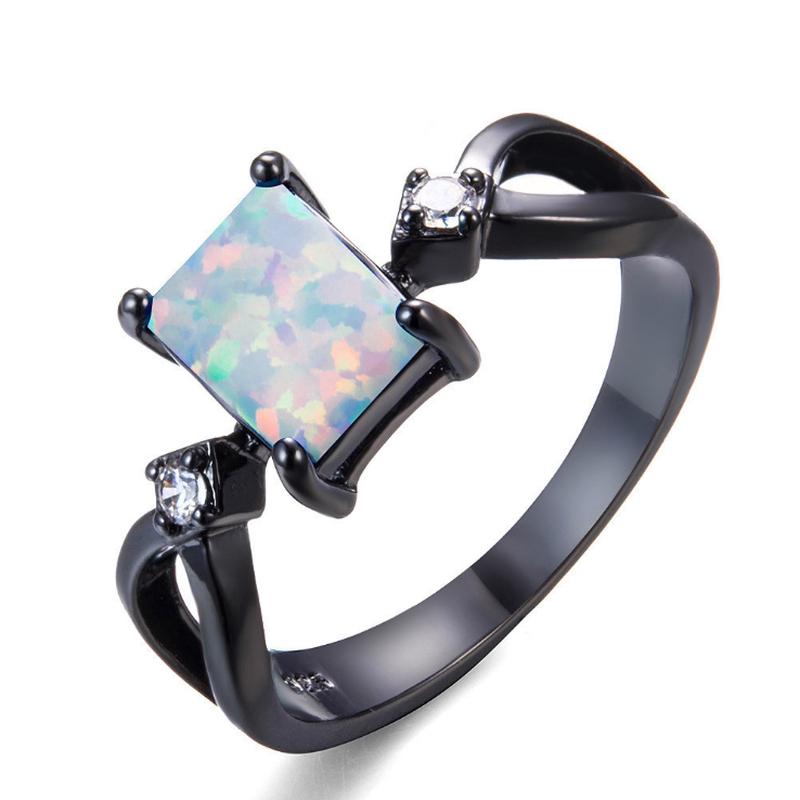 925 Sterling Silver Plated Black Inlaid Square Opal Ring Women S Fine Jewelry